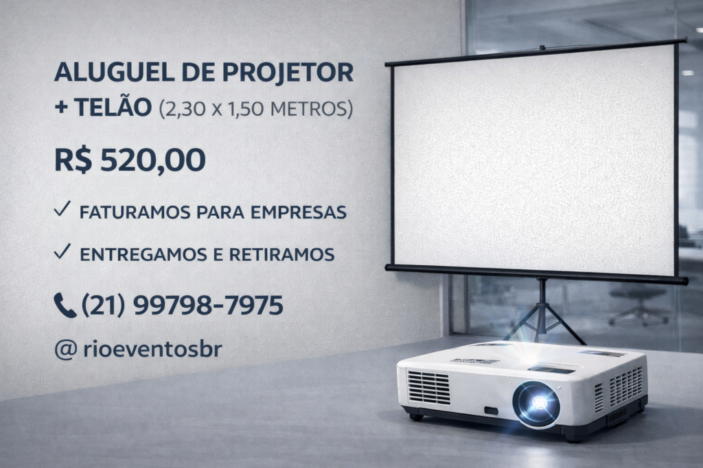 Oferecemos locação de projetor e telão para eventos no Rio de Janeiro, atendendo empresas, escolas, palestras, treinamentos corporativos, eventos médicos, congressos e reuniões empresariais.
