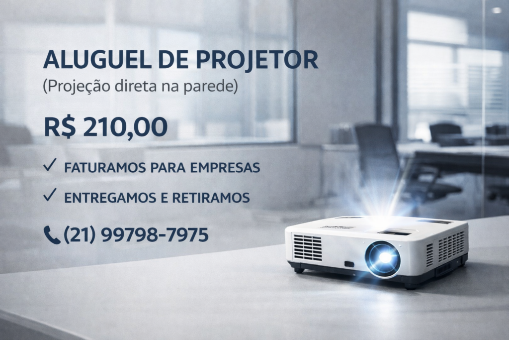 O valor do aluguel de projetor varia conforme a potência (lumens), duração do evento e se inclui telão e som. Em geral, alugar sai muito mais barato do que comprar, especialmente para eventos pontuais, palestras, treinamentos e reuniões corporativas.